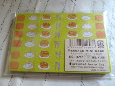 作家さんの楽しいイラストをモチーフにしたミニカードです。素敵なイラストが入っています。カード10枚のセットです。大きさは横8.5cm、縦5.5cmです。