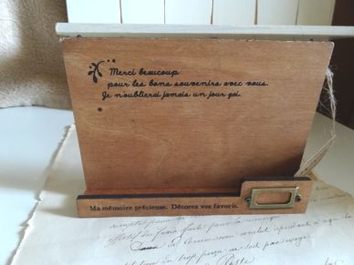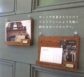 ナチュラルなデザインが素敵な木製のカードホルダーです。カードや写真を飾るととっても素敵です。写真立て代わりに。壁掛け用のフック付きです。サイズは横15.2cm、高さ11cm、奥行き2.5cm位です。