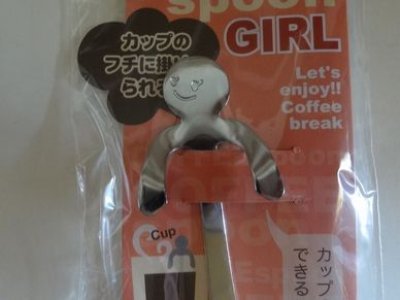 可愛いデザインのカップのふちに引っかけることの出来るスプーンです。ステンレス製になってます。コーヒー、紅茶などに。可愛い人のデザインになっています。大きさは幅4cm、長さ11.1cm位です。