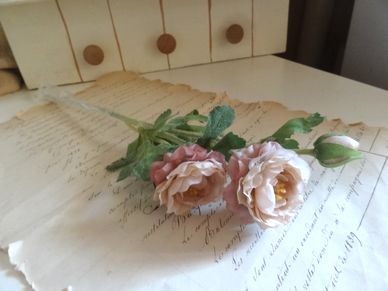色合いが素敵なラナンキュラスのアートフラワーピックです。小さな小瓶やかごなどに飾るととっても素敵です。花がたくさんついています。横10cm、縦32cm位です。