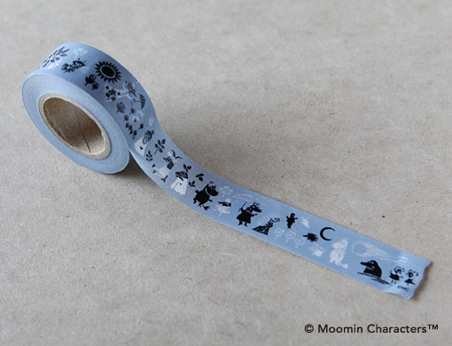 北欧風のムーミンの柄が素敵なマスキングテープです。ラッピングやコラージュ、文具のワンポイントに。素材は和紙です。大きさは幅2cm、長さ15m巻き位です。