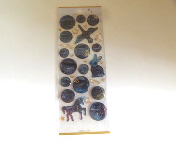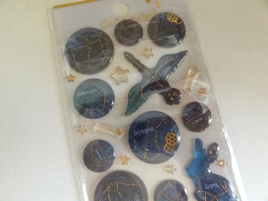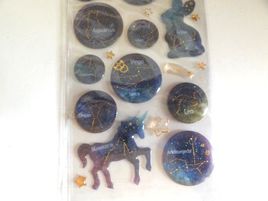 メルヘンなイラストが素敵なぷっくりしたドロップタイプのシールです。ノートや手帳、携帯などにも。中に星がちりばめられているようなデザインがとっても可愛いです。大きさは台紙が横7.3cm、縦19.5cm位です。