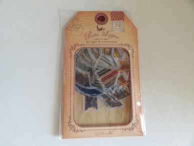 素敵なデザインのシールです。トレーシングペーパー素材の透け感のあるシールが8柄、各4枚、計32枚入ってます。アルバムやノートのコラージュなどにも使えます。大きさはパッケージが横8cm、縦13cmです。