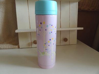 プリントが可愛いステンレスボトルです。ステンレス製でとっても丈夫です。保冷、保温効果もとってもいいです。中蓋はそのまま飲めるように穴あきになってます。要領は500mlです。大きさは横6.9cm、縦22.3cmです。