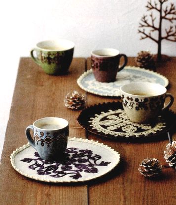 北欧風の可愛いマットです。刺繍がとっても素敵です。ランチョンマットやコースターにも。表はフェルトで、裏はコットンです。大きさは直径23cm位です。