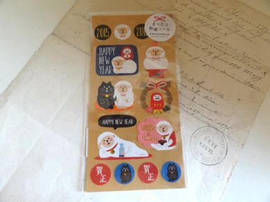 可愛い縁起ものを集めたシールのセットです。手紙や年賀状、ラッピング、文具などのワンポイントに。台紙の大きさが横8.2cm、縦16.5cm位です。