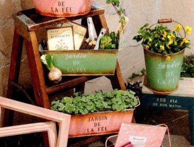 ジャンク風のデザインのおしゃれなバケツです。ブリキ製でフレンチ風のデザインになってます。グリーンを入れたりインテリアにもぴったりです。大きさは横10cm、高さ11cm、内径9.5cm位です。