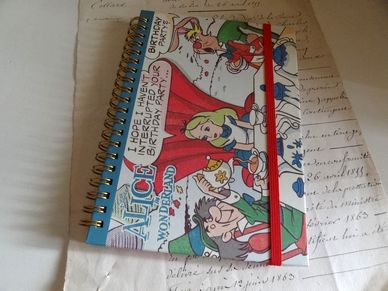 メルヘンなアリスのイラストが表紙にプリントされた素敵なリングノートです。中はシンプルな罫線になっています。中身は70枚です。大きさはB6サイズで横12.8cm、縦18.2cmです。