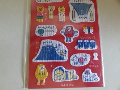 ざらざらした和紙素材とゆるいキャラクターが可愛いシールです。アルバムやラッピングなどにも。デザインがとっても癒されます。大きさは台紙が横7cm、縦17.5cm位です。