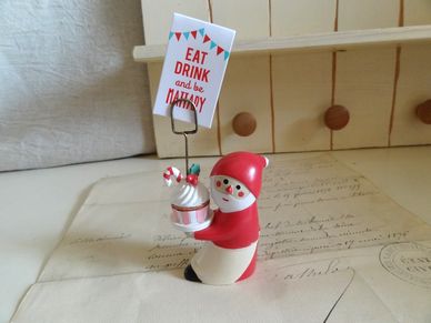 キュートなデザインのレジン製のカードスタンドです。金具の先にカードや写真などはさんで飾れます。クリスマスのインテリアのワンポイントにも。大きさは横4.8cm、縦8cm位です。