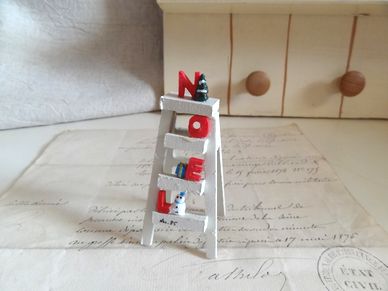 可愛いレジン製のはしご型のオーナメントです。ノエルの文字と小さな雪だるまが可愛いデザインになっています。お庭やお部屋のインテリアに。大きさは横3.5cm、縦8cm位です。