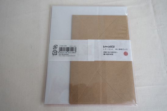 レトロなデザインが素敵なレターセットです。可愛いプリントになっています。便箋が10枚、封筒が3枚入りです。美濃和紙が使われています。大きさは封筒が横14.2cm、縦9.2cmです。