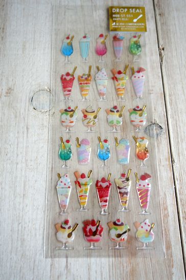 ぷっくりしたドロップタイプの可愛いシールです。ノートや手帳、コラージュやシール帳などにも。コーティングされたようなデザインがとっても可愛いです。大きさは台紙が横7cm、縦16.5cm位です。