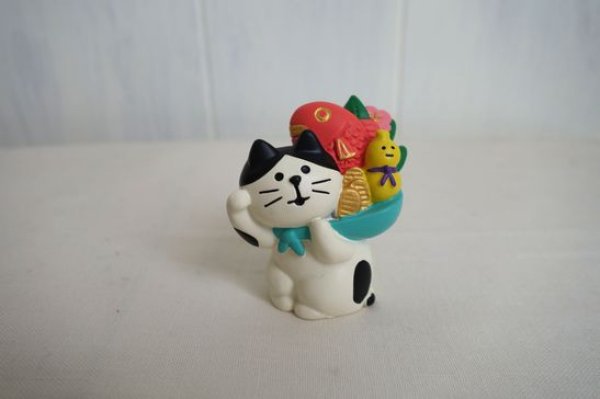 可愛いデザインのポリレジン製の置物です。とってもキュートです。縁起物を担いでいます。開運招福の小物を持っています。インテリアにも。大きさは横4.3cm、縦4.6cm位です。