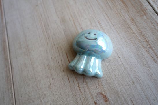 可愛いデザインの箸置きです。陶器製になってます。表面にラスター加工をしてあり、キラキラした涼しげなデザインになっています。プレゼントにもぴったりです。大きさは横3.5cm、縦4cm、厚み1.6cm位です。