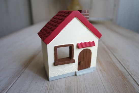 ポリレジン製のミニチュアのお家です。お部屋のインテリアにも。マスコットと飾るととっても可愛いです。大きさは横7.4cm、縦7.6cm、奥行き4.3cm位です。