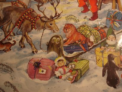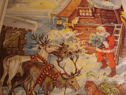 ドイツ製の素敵な絵のアドベントカレンダーです。おうちの飾りにも、クリスマスのプレゼントにしても!!日にちがついた窓を開けると色々なイラストが出てきます*大きさは横21cm、縦28cm位です。