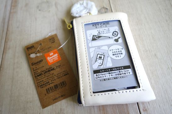 合皮素材の可愛いキーケースです。鍵やICカードを入れてバッグに取り付けるのに便利です。スマートキーは入れたまま操作が可能です。ファスナータイプです。デザインがとっても可愛いです。大きさは横6.5cm、縦10.5cm位です。
