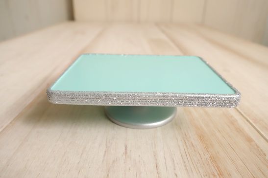 キュートなデザインのレジン製のミニテーブルです。マスコットなどと飾ると可愛いです。インテリアなどのワンポイントに。ふちがキラキラしています。大きさは横8.8cm、高さ2.6cm位です。