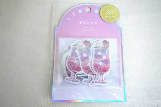 幻想的な空をモチーフにしたフレークシールです。ラッピングやコラージュ、文具のワンポイントに。トレーシングペーパー素材にマットのゴールド箔があしらわれています。40枚入りです。大きさはパッケージが横9cm、縦12.8cm位です。