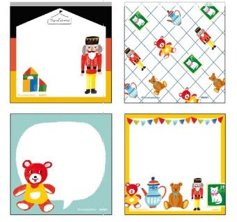 ドイツにいった気分にさせてくれる素敵なスクエアメモです。4柄が各25枚合計100枚のメモです。大きさは横cm、縦9cm、厚み1.1cmです。