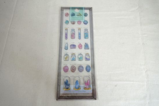 ガラスの容器に入ったようなおしゃれなドロップシールです。ノートや手帳、ラッピングやコラージュなどに使えます。大きさは台紙が横7cm、縦18cm位です。