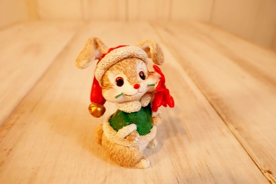ビンテージアニマルデコレーション ラビット&ポインセチア