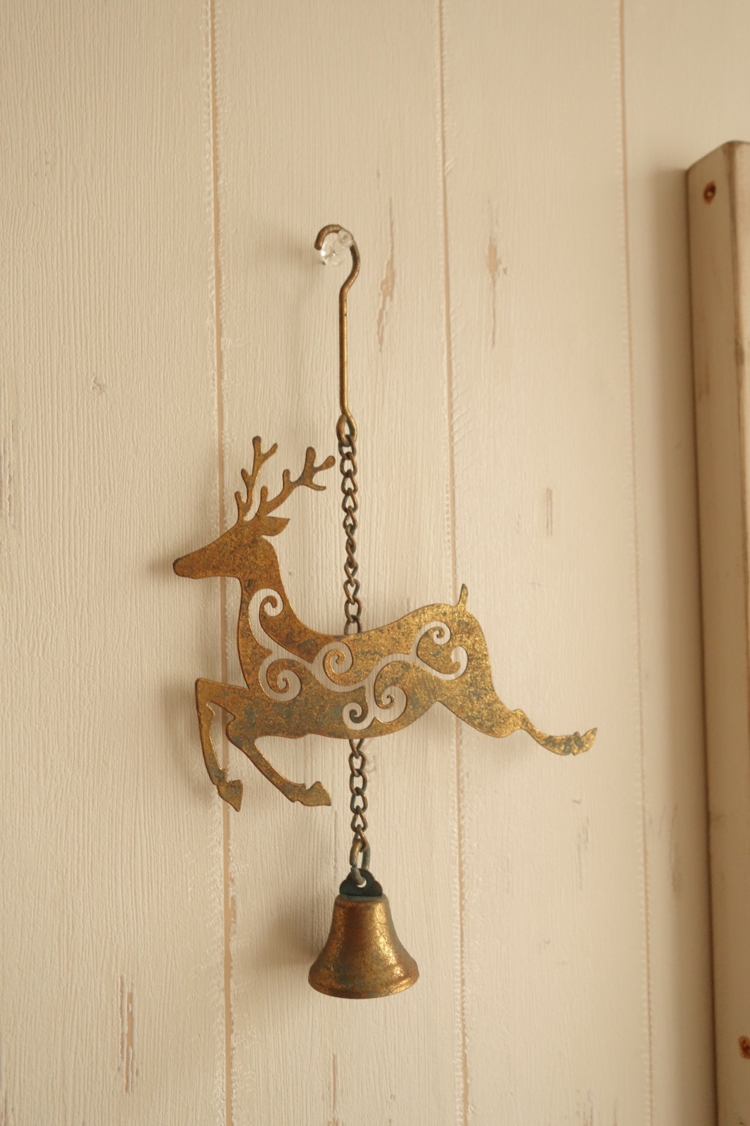 北欧風のスチール製のオーナメントです。ベル付きで玄関などに。お部屋のインテリアに。大きさは横12cm、縦25.5cm位です。