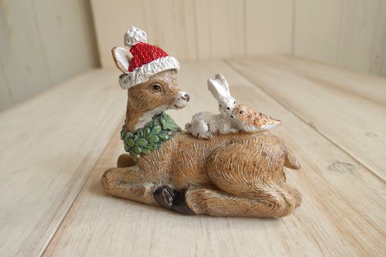 可愛いデザインのオーナメントです。クリスマスのデザインになってます。インテリアやガーデンに。ポリレジン製になっています。大きさは横9cm、縦7cm位です。