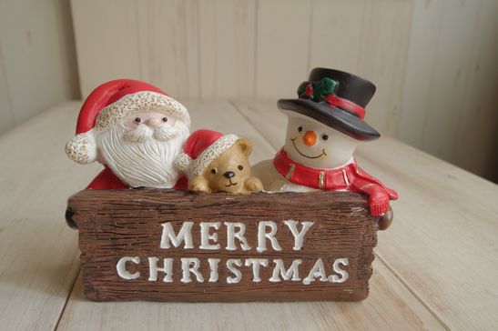 可愛いデザインのオーナメントです。クリスマスのデザインになってます。インテリアやガーデンに。ポリレジン製になっています。大きさは横13cm、縦9cm位です。