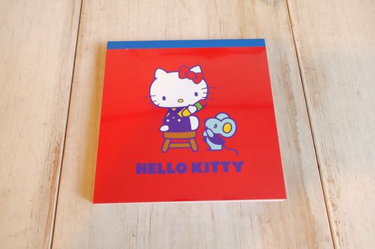 レトロなサンリオ柄が可愛いスクエアメモです。4柄が各20枚合計80枚のメモです。大きさは横9.5cm、縦9cm、厚み1cm位です。