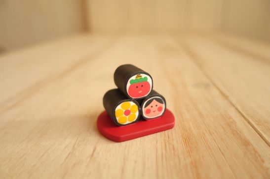 レジン製の可愛い節分モチーフのオーナメントです。可愛いデザインになっています。インテリアに飾るととっても素敵です。小さな巻きずしです。大きさは横4cm、縦2.8cm位です。