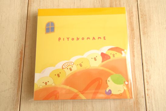 ぴよこ豆柄が可愛いスクエアメモです。2柄が各60枚合計120枚のメモです。大きさは横10cm、縦10cm、厚み1.3cm位です。