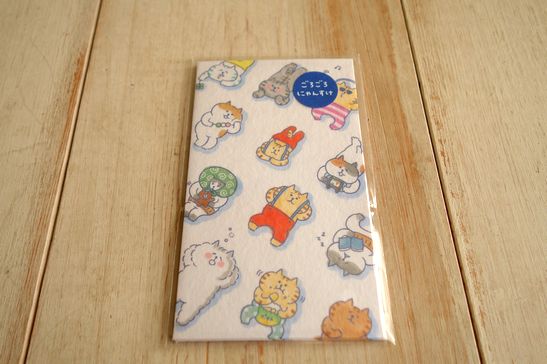 可愛いほっこりしたイラストが素敵なぽち袋です。3枚入りになっています。封シール付きです。大きさは横6.5cm、縦11cmです。