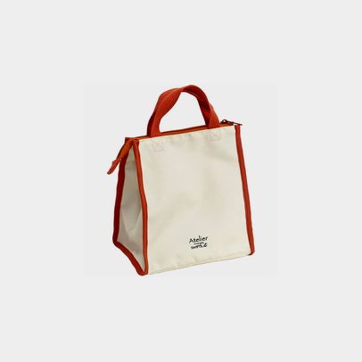 おしゃれな作家さんのイラストのランチバッグです。色合いやデザインもとっても素敵です。中がアルミで保冷、温効果があります。表面には便利なポケット付きです。裏面にはブランドロゴ入りでさりげないポイントになっています。大きさは横19cm、縦20.5cm、まち13cm位です。