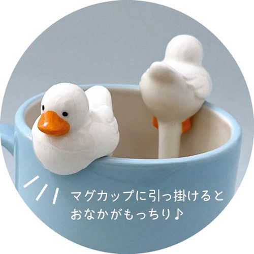 可愛いあひるのスプーンです。陶器製になってます。カップに引っ掛けて使えます。大きさは横2.8cm、縦10.4cm位です。
