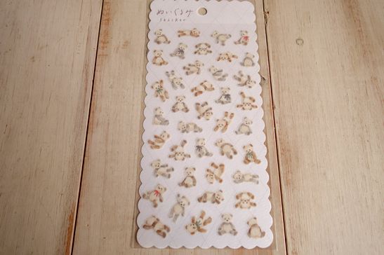 可愛いふわふわぬいぐるみのようなシールです。デザインがとっても可愛いです。ノートや手帳、ラッピング、コラージュなどに。大きさは台紙が横9cm、縦17.5cm位です。