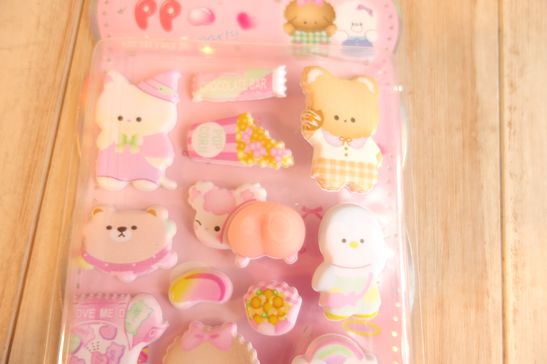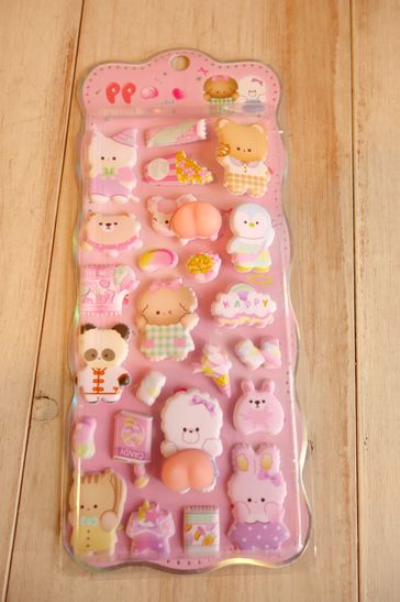 可愛いぷっくりタイプのシールです。洋服メーカーさより入荷分ですのでmade in Chinaになっております。ノートや手帳、ラッピングやコラージュ、シール帳などに可愛く貼れます。大きさは台紙が横10.5cm、縦24cm位です。