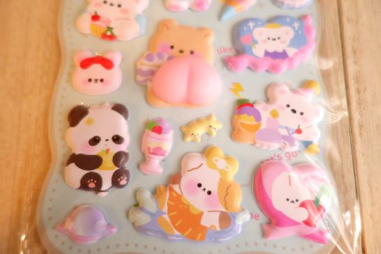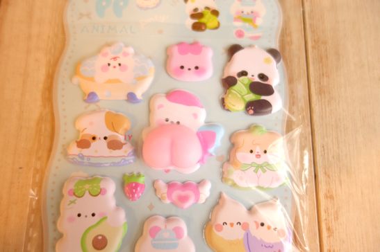 可愛いぷっくりタイプのシールです。洋服メーカーさより入荷分ですのでmade in Chinaになっております。ノートや手帳、ラッピングやコラージュ、シール帳などに可愛く貼れます。大きさは台紙が横10.5cm、縦23.5cm位です。