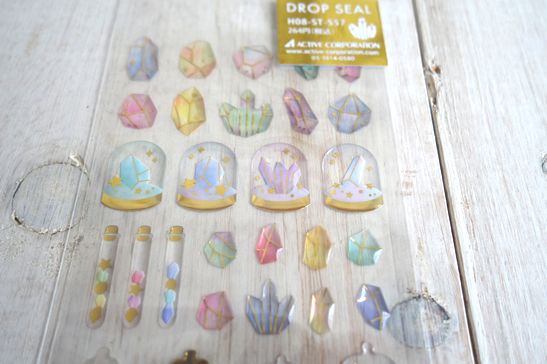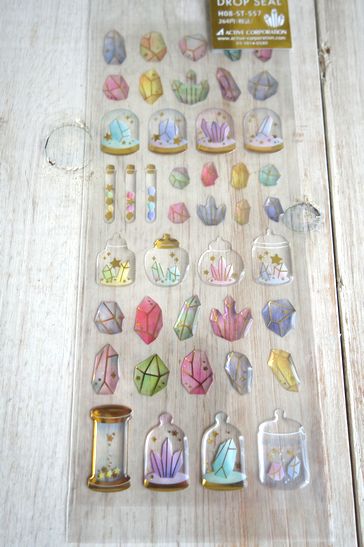 ぷっくりしたドロップタイプの可愛いシールです。ノートや手帳、コラージュやシール帳などにも。コーティングされたようなデザインがとっても可愛いです。大きさは台紙が横7cm、縦16.5cm位です。