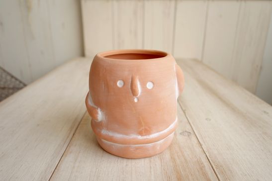 可愛いデザインの素焼きのポットです。はにわのデザインになってます。インテリアやガーデンに。穴ありです。多肉植物やアレンジメントに使えます。大きさは横12cm、縦11.8cm、内径が横8.5cm、縦11cm位です。