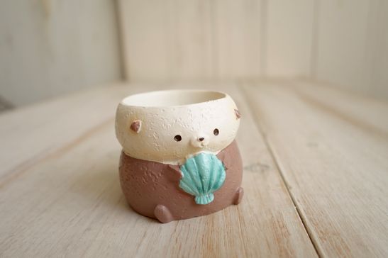可愛いデザインのポットです。ラッコのデザインになってます。インテリアやガーデンに。ポリレジン製になっています。穴なしです。小さめの多肉植物やアレンジメントに使えます。大きさは横5.2cm、縦4.2cm、内径が横3.8cm、縦3.5cm位です。