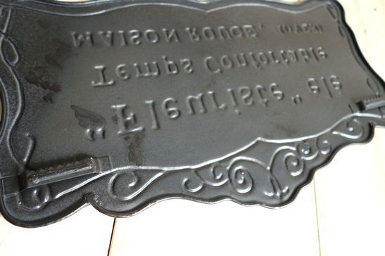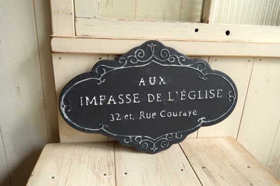 アンティークなデザインが素敵なティンプレートです。英字が素敵なフレンチ風のプリントになってます。ナチュラルなインテリアやお庭のワンポイントに。大きさは横34.8cm、縦22cm位です。