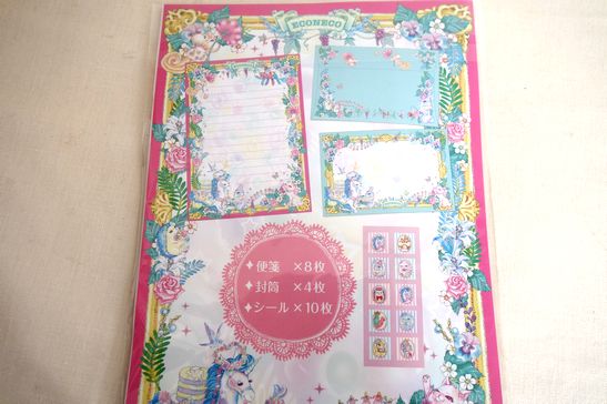 メルヘンな柄が可愛いECONECOさんのレターセットです。便箋8枚、封筒4枚、シール10種類のセットです。素敵なイラストが送った方にも喜ばれそうです。大きさは便箋が縦19cm、横13.5cm位です。