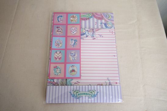 メルヘンな柄が可愛いECONECOさんのレターセットです。便箋8枚、封筒4枚、シール10種類のセットです。素敵なイラストが送った方にも喜ばれそうです。大きさは便箋が縦19cm、横13.5cm位です。