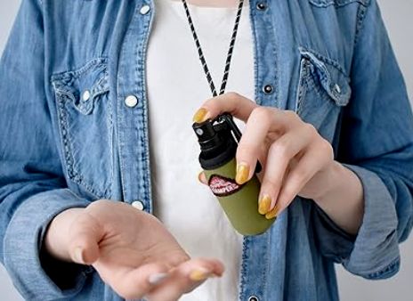 30mlのボトルがぴったり入ったスプレーボトルホルダーです。ネックストラップが付いているので、バッグや首などに掛けておけばサッと使えて便利です。