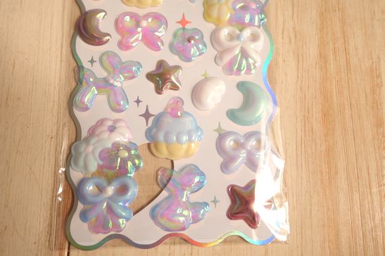 まるで本物のバルーンアートのような透明感あるシールです。ノートや手帳、携帯、シール帳などにも。メタルパーツのような質感も素敵です。大きさは横9.5cm、縦20.3cm位です。