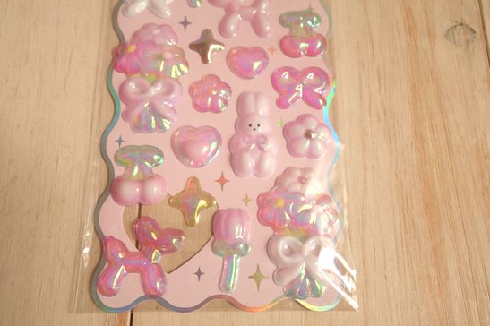 まるで本物のバルーンアートのような透明感あるシールです。ノートや手帳、携帯、シール帳などにも。メタルパーツのような質感も素敵です。大きさは横9.5cm、縦20.3cm位です。