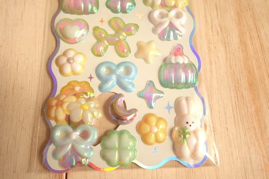 まるで本物のバルーンアートのような透明感あるシールです。ノートや手帳、携帯、シール帳などにも。メタルパーツのような質感も素敵です。大きさは横9.5cm、縦20.3cm位です。