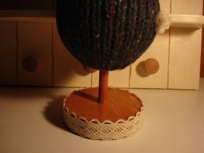 ナチュラルなニット製のツリーです。土台は木製にレースがあしらわれています。プレゼントやインテリアにもぴったりです。手作り風でとってもキュート。大きさは横12cm、縦35cm位です。
